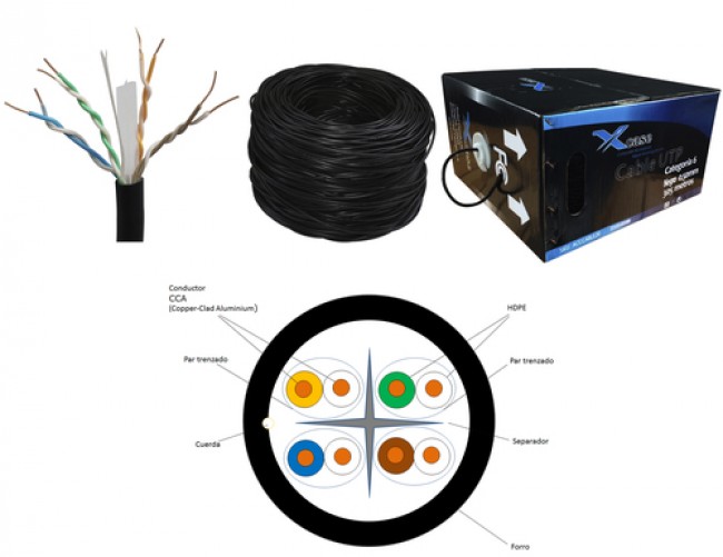 Bobina Xcase (acccable21dofo), Color Negro Doble Forro Exterior Utp Cat6 305 Mts