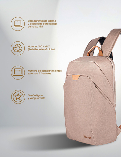 Mochila Techzone Tzlbp56w-c Bolsa Delantera, Tamaño Max De Pantalla 15.6", Tereftalato De Polietileno Reciclado (rpet), Color Color Camel