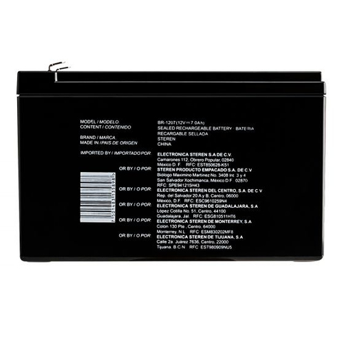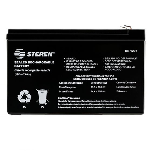 Bateria Steren Br-1207 Sealed Lead Acid (vrla), 12 V, 7000 Mah, Negro