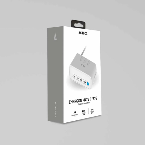 Cargador Acteck Energon Mate Ce676 125 V, Universal, Interior, 2usb, 2usb-c, Carga Rápida, Blanco