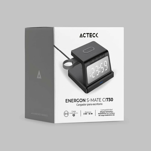 Cargador Inalambrico Qi Acteck Energon S-mate Ci730, Reloj Digilal, Usb, 15w, Negro