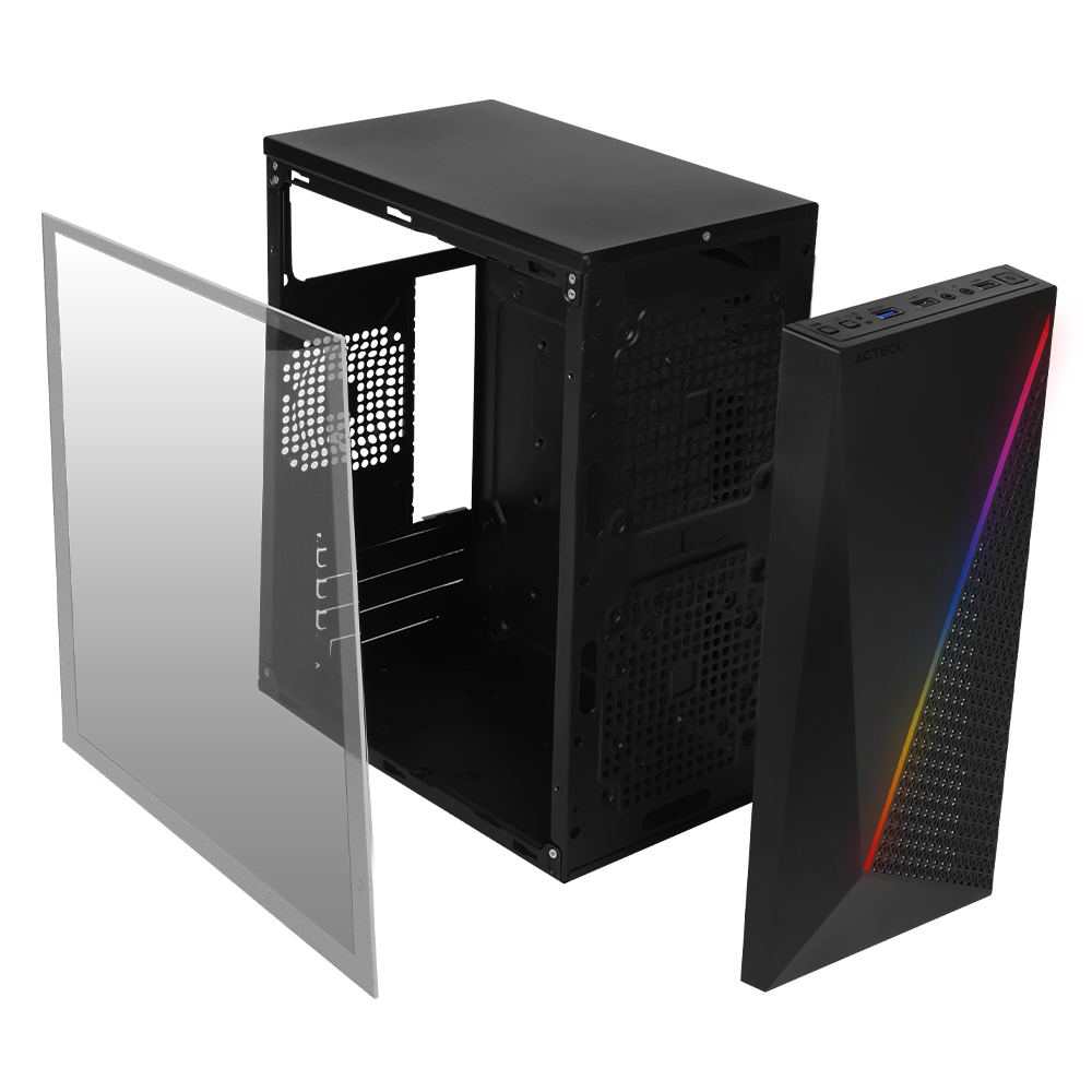 Gabinete Acteck Fuji Gc47, Panel Lateral, Frontal Malla, 500w, 2x Ventiladores Rgb, Negro