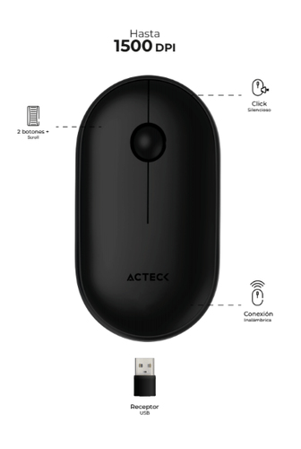 Mouse Optico Inalambrico Acteck Entry Mi240, 2 Botones, 1200 Dpi, Usb, Negro