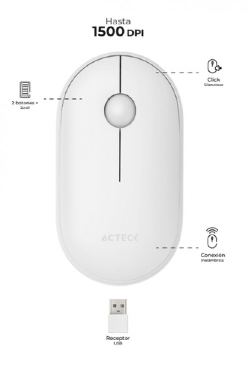 Mouse Acteck Optimize Edge Mi460, Inalambrico, 1500 Dpi, Usb-a, Blanco