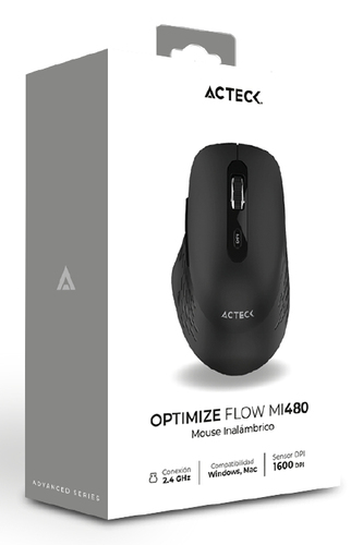 Mouse Inalambrico Acteck Optimize Flow Mi480, 1600dpi, 2.4 Ghz, 6 Botones, Negro