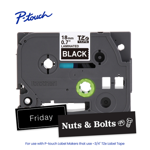 Cinta Brother Tze345g Blanco Sobre Negro, 1.8 Cm, 8 M