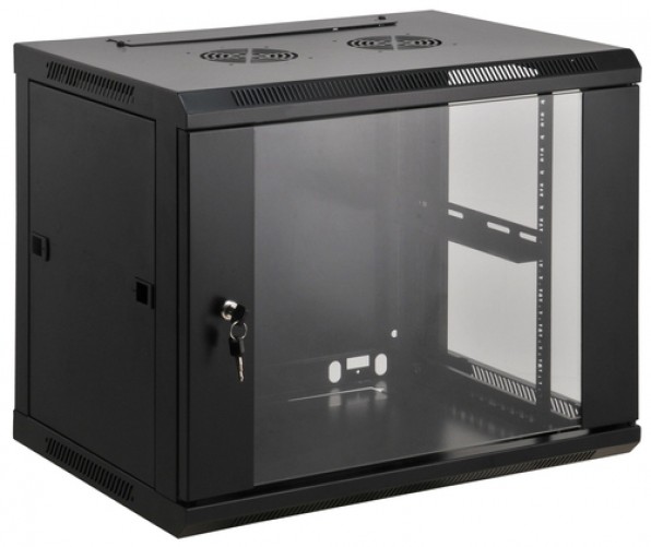 Rack Intellinet 711777 Tipo Bastidor De Pared, Capacidad Del Rack 9u, Vidrio, Acero, Peso Max. 60 Kg, Tamaño 48.3 Cm (19"), Color Negro