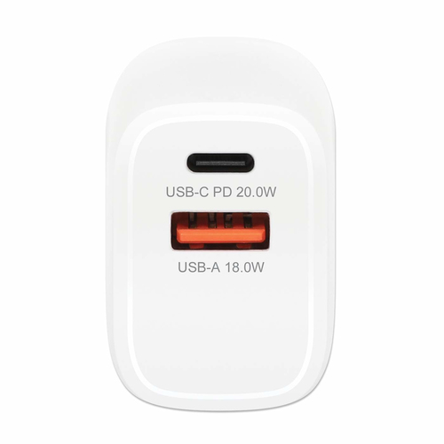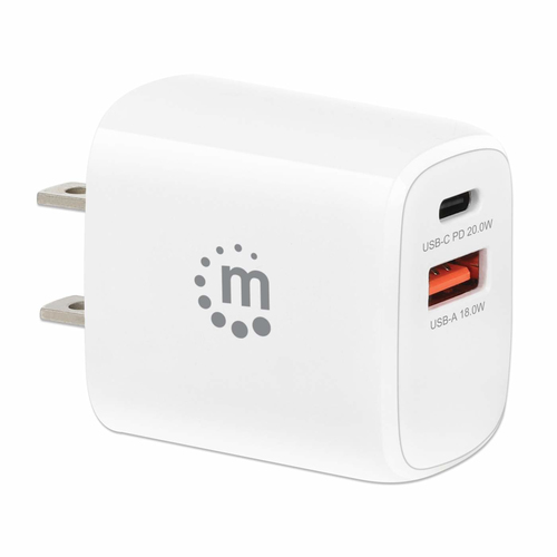 Cargador Usb De Pared Manhatta, Usb Tipo-c 20w, Usb A 18w, 3.0a, Blanco
