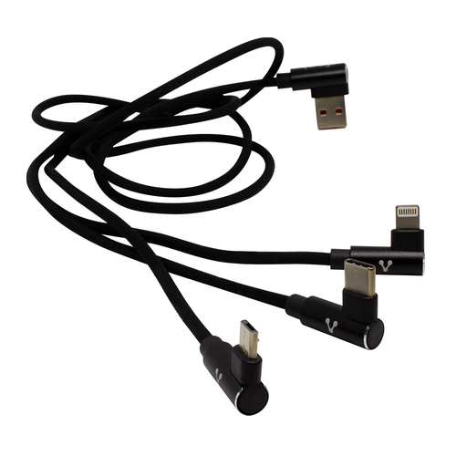 Cable Usb Vorago Cab-308 3 En Uno, Micro Usb, Tipo C Y Lightning, Negro 1.2 M, Conectores En 90 Grados,