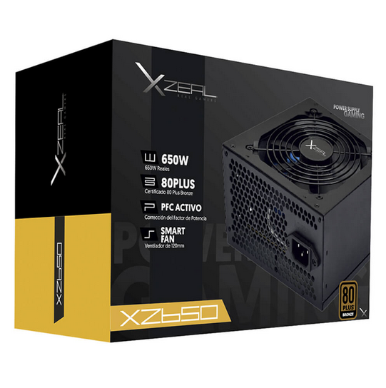 Fuente De Poder Xzeal Xz650, 650w, Certificado 80 Plus Bronce, Pfc Activo, Smart Fan 120mm, Atx 20+4 Pin