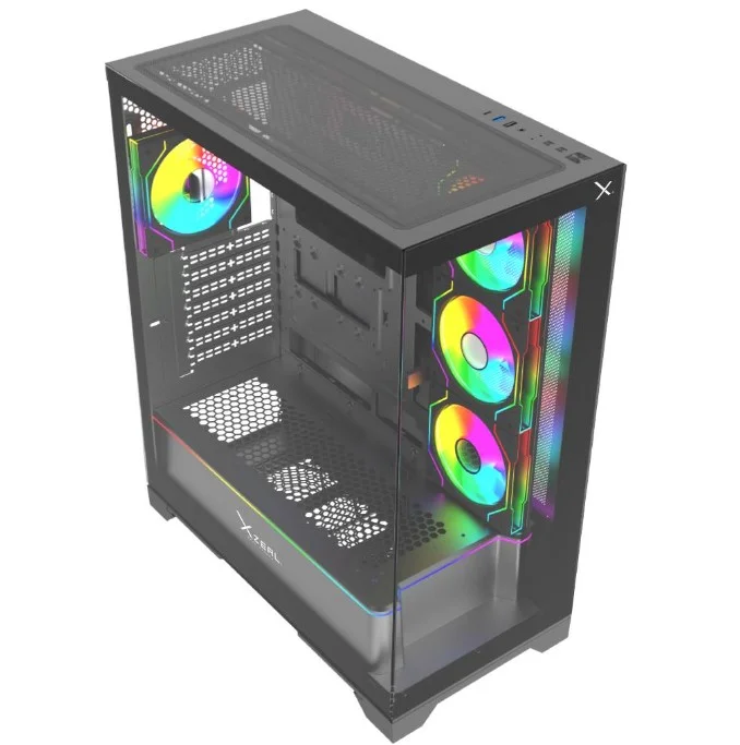 Gabinete Xzeal Xz110-1 Torre Atx, Panel Lateral Vidrio, 3x Ventiladores Rgb, Negro