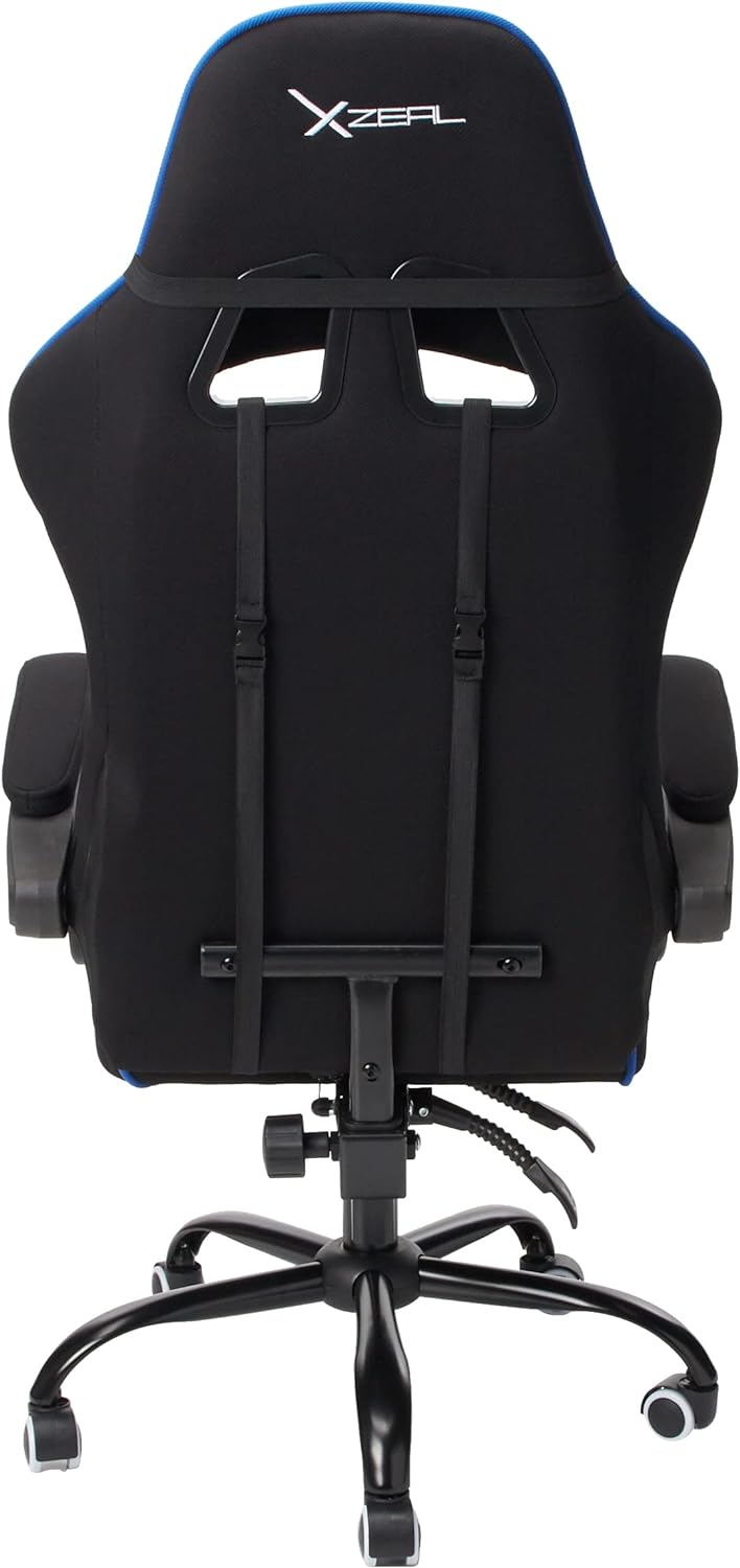Silla Gamer Deportiva Xzeal Xz20 Ergonomica, Reclinable, Piston C3, Acero, Soporte Lumbar Azul/negro