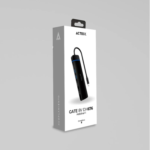 Hub Acteck Gate 8v Dh676 Interfaz Usb 3.2 Gen 1 (3.1 Gen 1) Type-c, 2 Usb A 3.1, 1 Usb Tipo C, Aluminio, Cantidad De Puertos 8, Longitud De Cable 0.15 M, Velocidad 10200 Mbit/s, Color Negro