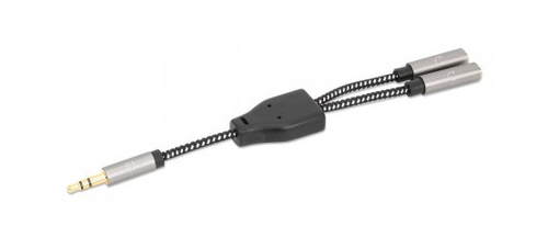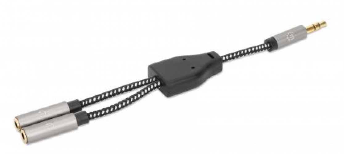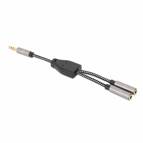 Adaptador Audio Manhattan 3.5mm, 1 Hembra A 2 Macho, 2 X 3.5mm, 0.15 M, Negro-plata, (356121)