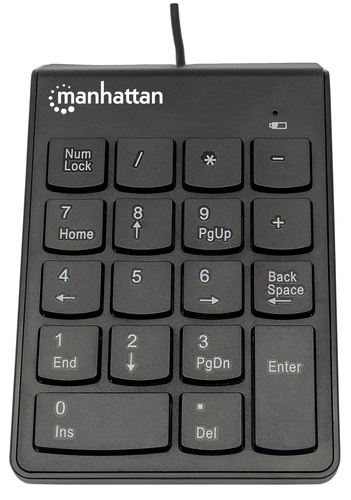 Teclado Numerico Manhattan, Alambrico, 19 Teclas, Usb 2.0, Triple Cero, Color Negro